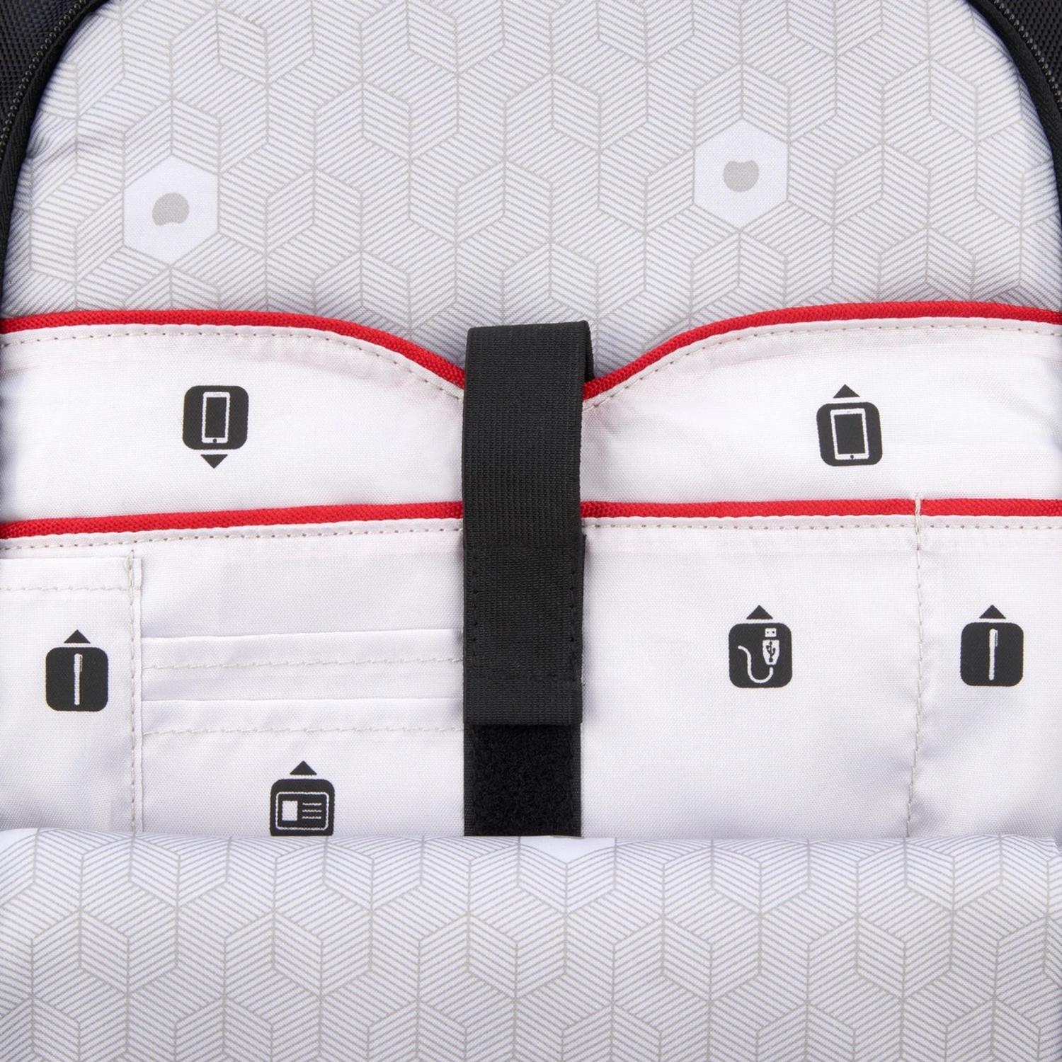 • Compartimentos específicos para proteger una laptop portátil 15,6'' y la tableta • Múltiples bolsillos para mantener sus pertenencias seguras y organizadas • Fácil acceso a las pertenencias gracias a su distribución inteligente • Mayor comodidad gracias a su compatibilidad con el sistema de trolley • Bolsillo para power bank • Espacio lateral para botella |